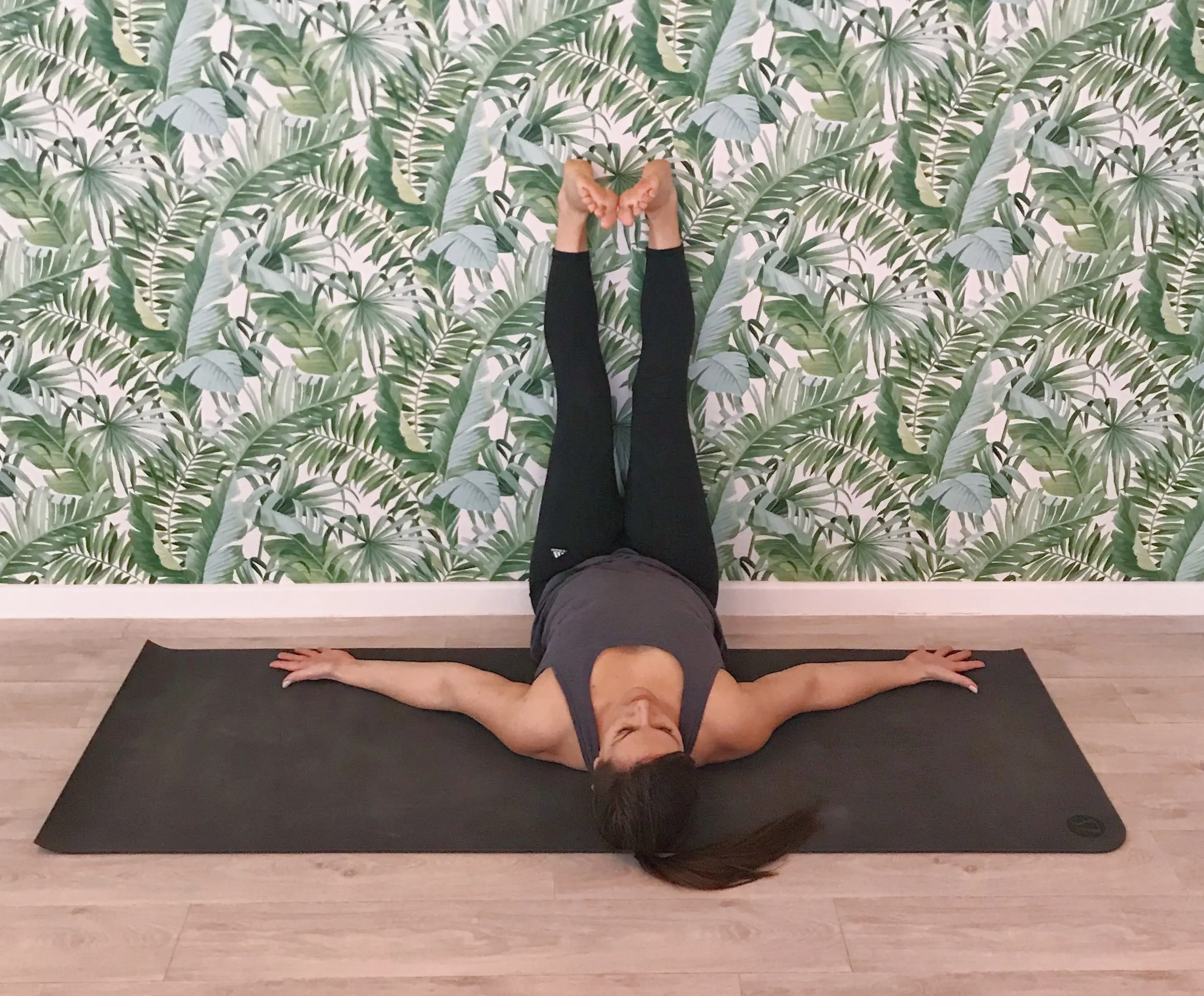Other than having a rather lovely name, the happy baby pose helps to stretch the lower back muscles, gluteus maximus (the larger glute muscle) and hamstrings. It also helps relieve pain in the lower back and at the bottom of the spine leaving you feeling, well, like a rather happy baby.